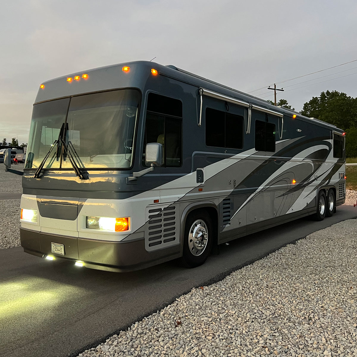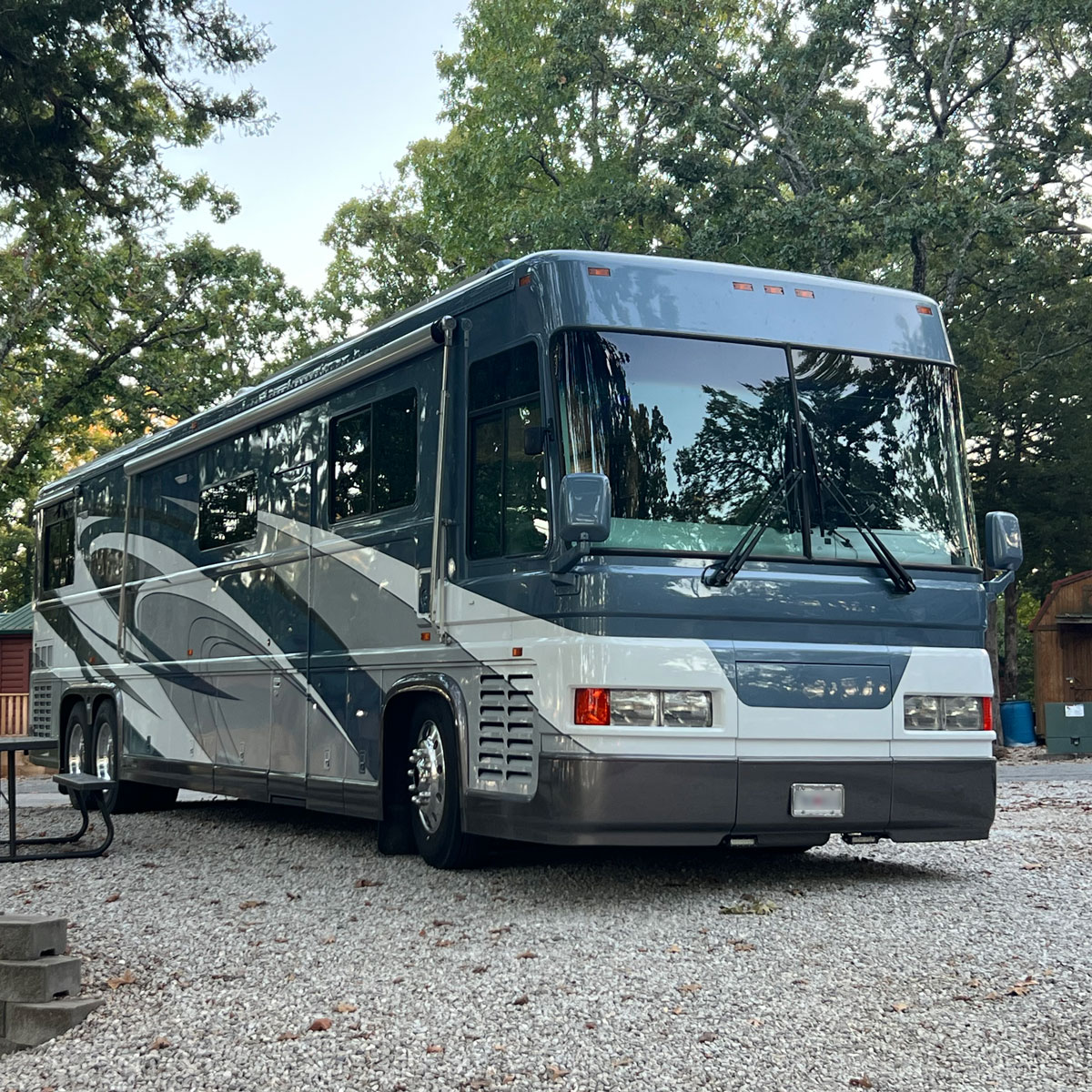 Our 44 foot Newell Coach motorhome, affectionately named The Barber Bus, isn't just a way to travel; it's a rolling stage, a creative hub, and a reminder that life is meant to be lived fully! Painstakingly restored by Simon Kotsailidis, we are honored to be the new caretakers of this beautiful motor coach. Every mile we drive represents new opportunities to share comedy, music, and connection with people from all walks of life. This chapter isn't about slowing down; it's about leaning in - into creativity, into service, and into the beautiful unknown that waits just beyond the next bend in the road!